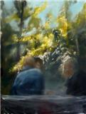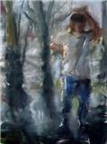 Présentation : Expressionniste*, elle brouille les figures par des superpositions, des rapprochements, des cryptages dans des huiles sourdes (1991). Elle donne l'impression du flou photographique rapidement brossé et traite surtout de natures mortes ou de mains peintes avec précision, sortant du brouillard. Ses inclusions de fragments d'autres toiles signifient, dit-elle, un changement de temporalité (2002).Elle se glisse dans les sous-bois et y débusque les couples enlacés ou les chiens errants, tandisque les troncs se reflètent dans une mare ; le mystère demeure malgré le glacis du rayon de lumière, (2011).