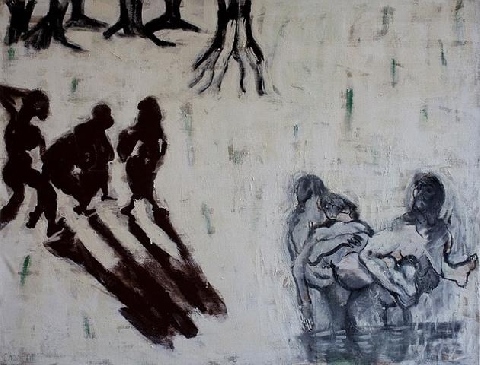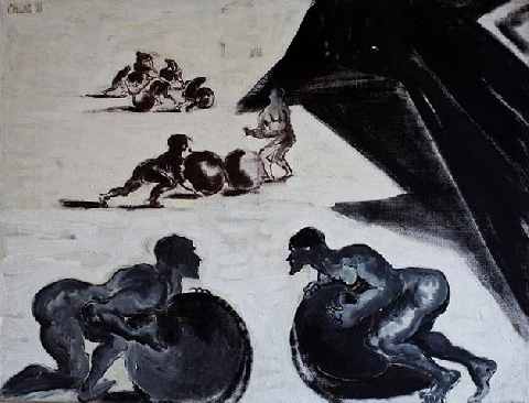 L'Enfer Chant VII, Les avares et les prodigues - tempera sur toile - 89 x 116 cm - 2002