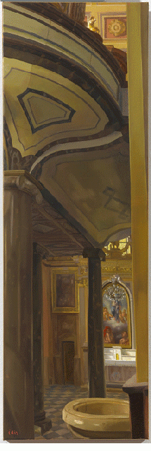 Présentation : Reprenant la tradition telle qu'elle est incarnée dans le Novecento*, il y ajoute un éclairage carravagesque et un fond uni, dépouillé de tout attribut, Autoportrait, (s. d.).