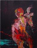 Présentation : Il rompt radicalement à la fin du XXe siècle. Jusque là, il est serein, orientalisant, posant sur un fond duni presque translucide, une fleur, un bol, les lignes d'une tête, (1999). Puis vient une peinture de deuil et de sang. Expressionniste* aux jets d'huiles dirigés, il montre des corps qui luttent, un homme les bras écartés au supplice d'une croix absent, un oiseau étripé, un chien pendu se vidant de son sang, un orang-outang si proche de l'être humain souffrant. Tous ces sujets sont d'un rouge sur noir, obtenu par un mélange d'autres couleurs qui disparaissent dans l'hémoglobine fraîche. Des torses d'adolescents aux montrent leur visage après un pugilat, arcade sourcière éclatée et bouche saignante. Les Curieux, (2009), au crâne déjà rongé observent le monde qu'ils ont quité. Il peint aussi dans une autre palette une série de chaises plus placides et sur lesquelles joue le jaune, (2005), un coq pendu, une femme borgne assise de face, (2008).