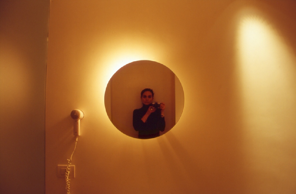 Présentation : Elle recourt aux couleurs chaudes pour ses intérieurs, au couleurs froides pour ses paysages. Les prises de vue des premiers sont toujours originales ; elle se prend dans un miroir ovale de salle de bains (2004), elle plonge sur un escalier en colimaçon, un lit double pris frontalement est entouré des deux yeux de ses lumières de chevet (2004) ; on la retrouve dans un miroir qui sert de porte entr'ouverte (2001), une contre-plongé radicale sur l'oculus du Panthéon romain, (2001). Elle prend au polaroid des fleurs au nom latin, une à une, et les numérise pour les agrandir.