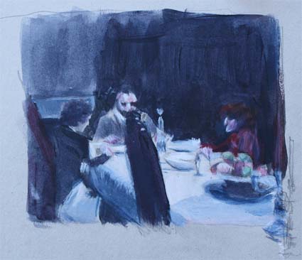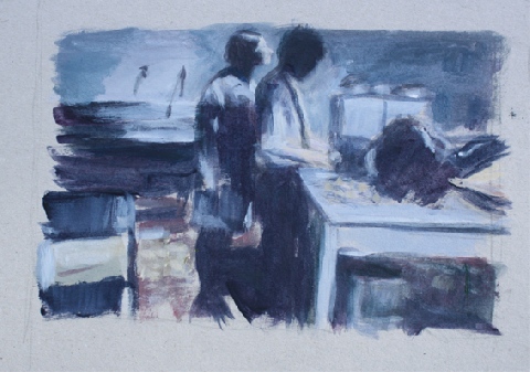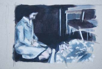 Présentation : Elle puise des images photographiques chez trois grands cinéastes chiliens, sélectionnant des scènes d'intérieur de la vie quotidienne pour leur intimité. Elle les rend en petits formats gris, touchés rarement d'un rai de couleur, et les ramène du 7e au 4e Art. Touche aussi rapide que l'impression de la pellicule d'où elle vient, Relations secrètes, (2010). Par ailleurs, sur toile, s'inspirant du graphisme, de la mise en page sur fond nu et des sujets de Le Gac*, Fillette au pistolet (2005).