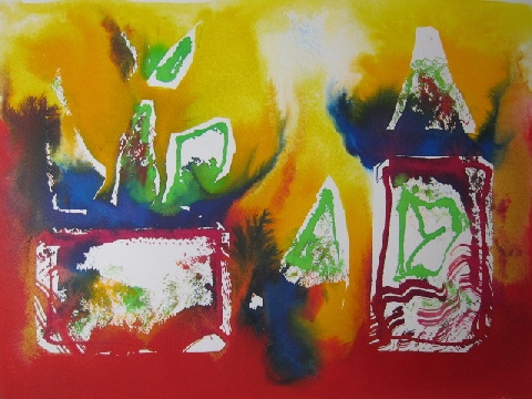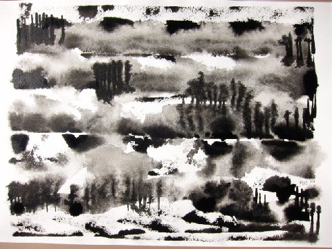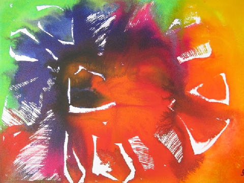 Présentation : Après avoir détruit quelques paysages et quelques académies, elle se consacre à la non-figuration dans le sillon de Sam Francis, le dripping* en moins. C'est-à-dire que, grâce à des caches personnels venus de morceaux de vitres, elle célèbre le blanc par la couleur, encres d'abord, acryliques ensuite. Des taches colorées spontanées éclatent ou s'organisent en fleuve ; elles sont contredites par des traits de jalousies (2006). Simultanément, des colonnes de miches tenant lieu d'hexaèdres, Yi King (2006). Puis les plots de couleurs deviennent cercles et s'entrechoquent (2010) et le blanc renaît.