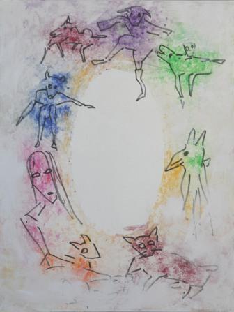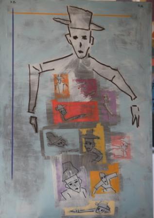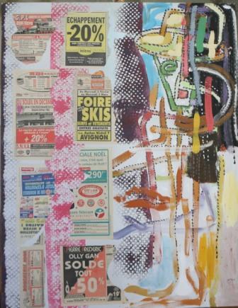 Présentation : Entre peinture proprement dite et graffiti. Avec pour ingrédients des collages de publicités, La Réclame (1999), les silhouettes humaines en bâtonnets, s'insèrent dans un balayage de pigments et résine, La Fenêtre (2006) ou Le Train (2010). Prolifique, on estime qu'en 2010, il est l'auteur de 4 000 numéros.