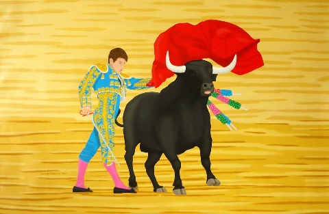 Présentation : Il détaille ses sujets sur fond uni et les met ainsi en valeur. Tauromachies ou portrait de toreros, vibrants du soleil de l'Andalousie. Figures de saints comme des statues peintes dans leur niche, yeux d'émail, entre icône et Occident. (s.d.).