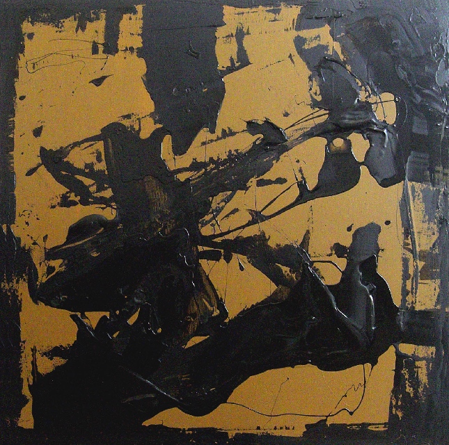 Présentation : Un lyrisme à la Schneider*, plus dépouillé, la toile blanche ne gardant qu'un geste de brosse, trempée dans une couleur principale et deux ou trois accessoires. Parfois, la toile est partagée par verticale et diagonale et la trace semble faire sur elle de l'acrobatie. Il est aussi sculpteur d'étendards en zinc ondulé à deux hampes, comme on en voit dans les films médiévaux japonais.