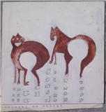 Présentation : Comme les prisonniers, il découpe le temps en traçant sept traits égaux, ensuite biffés, rangés en séquences identiques, noir sur blanc. Variante des chiffres d'Olitski*. A la fois comme signe d'évasion et comme signe de censure, Poles Forming the National Flag, (1989), la bande blanche ety la bande rouge couverte. Cet effacement n'est pas isolé, The Queen of Poland, (1987), la célèbre vierge de Czestochowa, est passée au noir
