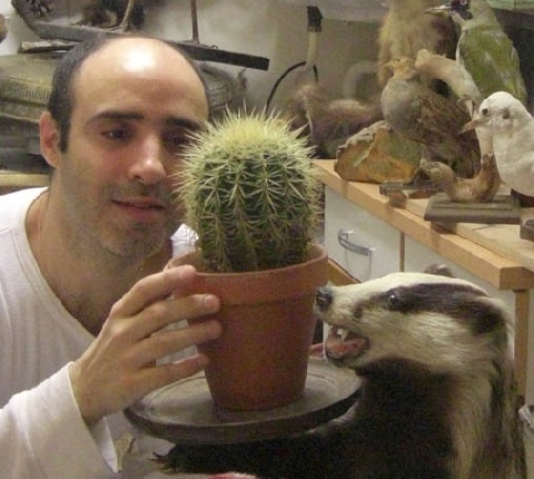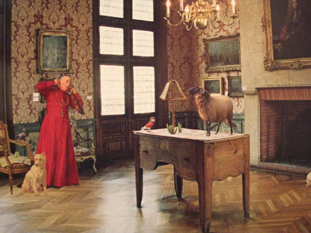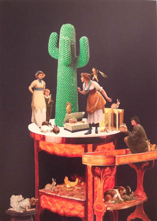 Présentation : Sur des photographies en couleur, prises par lui-même ou, plus rarement, empruntées à des magazines, il procède à des collages figuratifs, pour lesquels il trouve sa spécificité, mêlant dans un environnement moderne des figures de la peinture classique depuis le XVIIe. Il respecte l'échelle de grandeurs et, lorsque des angelots raphaélesques sautent au mors du cheval, tout est proportionné, Vision du futur, (2001), un cheval auquel s'appuie un nu de Géricault. Il rend la réalité par le décor photographique, le plus souvent intérieurs, et la transgresse par sa mise en scène de collages insolites, anachroniques. qui semblent faire un tout avec l'environnement. 'Ah, je ris de me voir si belle en ce miroir', (2007) ou La sagrada familia espagnole, (2008). Il raconte également des histoires en polyptyques, - parfois de neuf "panneaux" -, notamment celle de l'envahissement progressif cher à Ionesco : une carène de bateau se voit submergée par des cactus dans lesquels se glisse, chaque fois, une figure reprise à un maître d'autrefois, Naufragé dans le désert, (1999) ou Cavalliera Rusticana, (2001). Ses images de fond, qu'elles soient photographiques ou non, sont photocopiées, à ses débuts, les collages venant ensuite, en variations ou en déroulement de l'histoire, Tout est vendu à Barcelone, (2003), collage dans collage, puisque le fond est constitué d'une vue d'exposition personnelle. Le respect des proportions fait qu'un doute s'insinue et qu'à première vue on hésite entre collage et photographie, La Sagrada Familia, (2008). Ses polyptyques lui permettent de faire grand à base de petits et on songe, alors, aux livres muets de Mordillo*.