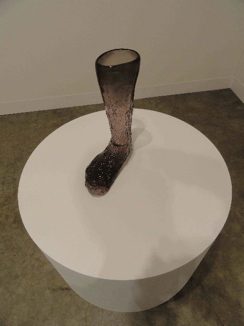 Présentation : Le suspendu l'attire. Pastiches de Léger*, tendus sur un cadre de bambous, comme une peau indienne, suite de 5 vestons, identiques, sur tringle perpendiculaire au mur ; masse-torche fixée à la paroi, (2003). Salle remplie de croix, de mousse alors qu'on les prend pour des poutres, (2006). Poutres sortant du murs ou étais triangulaires entre mur et plafond, donnent une impression de distorsion de l'espace, subitement agrandi, (2007) ou acier torsadé, Licorne, (2010), toujours moulés. Il dresse néanmoins au sol, une colonne torse, en bois peint en noir comme les précédents, (2007), des culs de tonneaux, ripolinés et cirés, Ovale, 1 et 2, (2010). Sa démarche consiste à minimaliser* les instruments industriels ou les objets sensés emblématiques de la Suisse. Ainsi de murs crépis, cachant la vue, de lanternes dont les verres sont obscurcis de brou de noix à la manière du Soulages* débutant, de Guitares, (2001, 2009), mais aussi de monuments réduits à leurs lignes essentiels pour les carrefours des villes, Colonne torsadée, 2012), un télescope sur pied, et, le plus remarquable une sorte d'autel en métal brun, fait de parallélépipèdes verticaux et horizontaux, (2010). Il montre des monochromes de couleurs ingrates, totalement informels, sauf à la pliure du papier de signifier l'horizon et dans ce cas l'oeillet autocollant du haute signifierait le soleil, (2010). Il moule la partie sous genoux de ses jambes, orteils sortant de chaussettes usées et haut s'achevant en moignon, Bertrand, (2010).