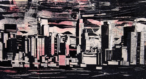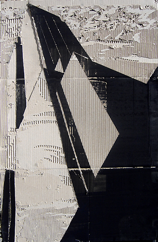 Par une mutation de technique, il adopte le carton ondulé qu'il attaque au scalpel pour y creuser les gratte-ciel de New York, conservés en réserve ou peints en noir, taché parfois de rose comme si l'aurore rejoignait le crépuscule ; l'oeil s'approche ou s'écarte, reçoit les plongées ou le panoramique, la forme ou les ombres, NewYork Carton, (2008-2010). En plongée, il fait de même ur de grands ensembles inanimés ; selon qu'il peint en noir ou en blanc, les façades et leur ombre ou les terrasses, l'abstraction devient positive ou négative, Interfaces, (2012)
