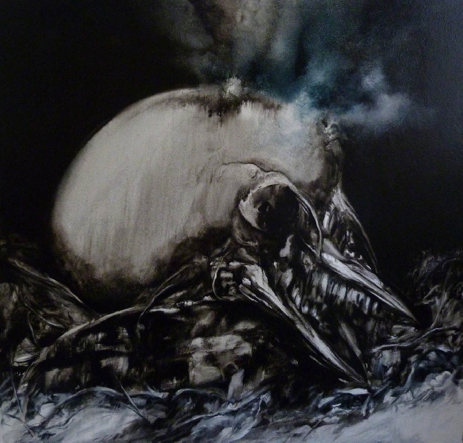 Présentation : Il commence par les peindre ces insectes impossibles, hybrides de la réalité et du fantastique, Les Faux-semblants, (1992). Il les moule dans des matériaux divers, cuir bouilli ou terre et les peint en noir,Objets tactiles, (1997). Des huiles transposent des des sites enfumés, Usine,(2010), des anfractuosités aux cataractes, Variation autour de la vallée des angoisses, (2009). Au fusain, les Racines des ombres, (2011), mêle dans l'horreur les végétaux désséchés et les crânes, La Tourmente, (2013).