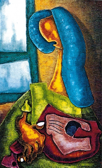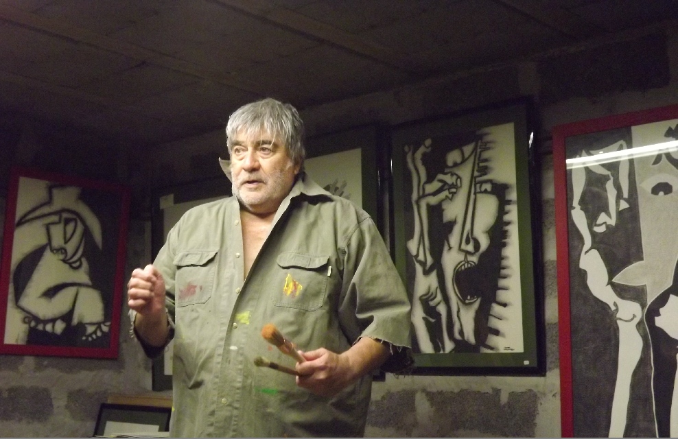 Présentation : Sous l'influence des muralistes mexicains, La Guitare est morte (1978), une abstraction* qu'éclaire le titre, faite d'un agencement équilibré d'aplats. De manière plus rude, bordés épaississement, Mère et enfant chiliens (1999), figuration de figures résignées ; et l' Hommage à Victor Jara (2001), une tôle ondulante se terminant par des esquisses de pieds, clouée sur une croix.