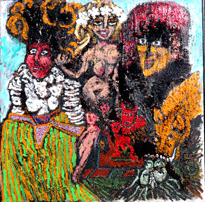 Senoras - huile et marc de café sur papier marouflé sur bois - 60 x 60 cm - 2008